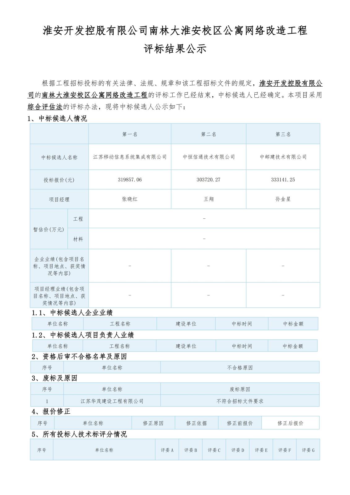 淮安開發(fā)控股有限公司南林大淮安校區(qū)公寓網(wǎng)絡改造工程評標結(jié)果公示